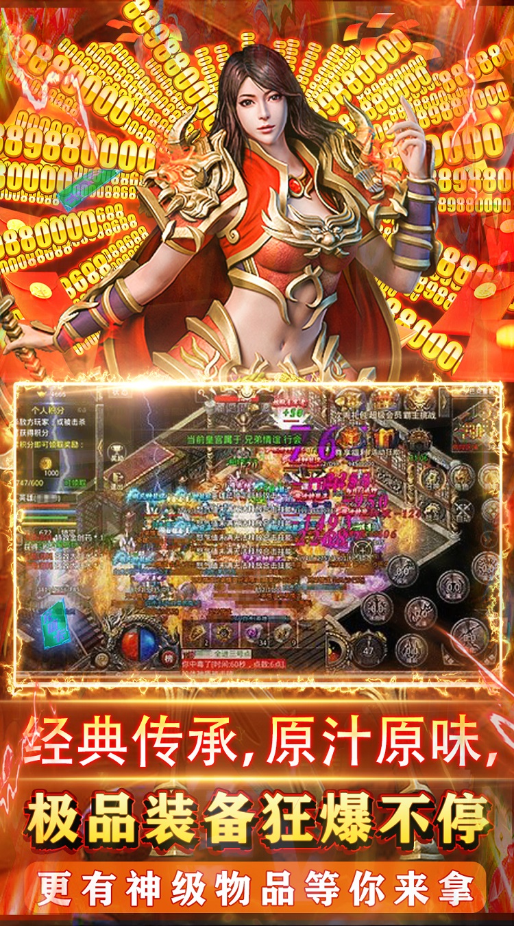 这是一款传奇手游,游戏内新增特色魂兽系统,独享炫酷魂兽外观,专属爆率顶级属性加成。既还原了传奇经典玩法又带来全新的游戏体验!战法道三位一体,集三职业技能于一身,玩家在战斗中可通过释放居合技自由切换三职业天赋技能,PK打怪强化战斗体验,刀刀切割刀刀暴击,满地光柱,每一次战斗都有不一样的刺激体验!沙城争霸、金身魔域、跨服成战等玩法应有尽有。